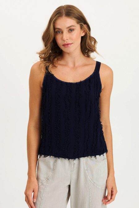 Ultra-soft and stretchy with a boatneck cut, Leka features bra-friendly straps. Elastic at the arm openings brings unique detail and flexible comfort to this easy-wear tank. A high-low silhouette tops the look off, with an asymmetrical elongated pointed back hem featuring distressed edges. Luta Rayon Jersey: 94/6 Rayon/Spandex Center Front:…