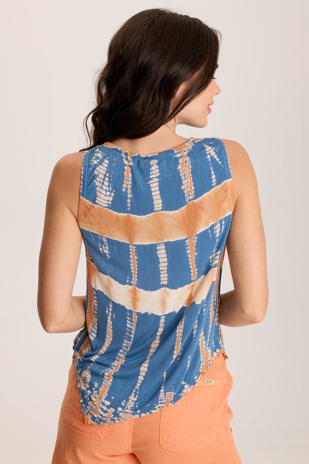 Ultra-soft and stretchy with a boatneck cut, Leka features bra-friendly straps. Elastic at the arm openings brings unique detail and flexible comfort to this easy-wear tank. A high-low silhouette tops the look off, with an asymmetrical elongated pointed back hem featuring distressed edges.